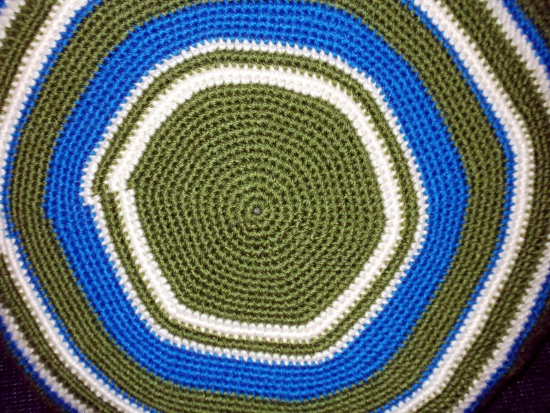 La parte delantera está hecha en ganchillo con lana de colores. (Aunque los colores los podéis elegír vosotros, como siempre!) La parte de atrás es de tela beige (loneta fina) y tiene una cremallera para meter el relleno. El relleno lo puede encontrar en tiendas de telas y es muy barato.